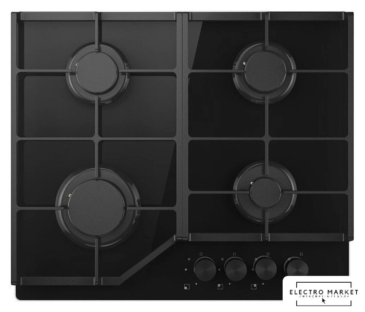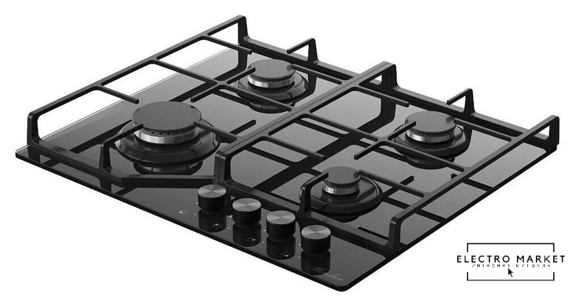 газовая на 4 конфорки, закаленное стекло, мощность: 8800 Вт, автоматический электроподжиг, газ-контроль, решетки: чугун, независимая установка, размеры (ШхГ): 58.6x50.6 см