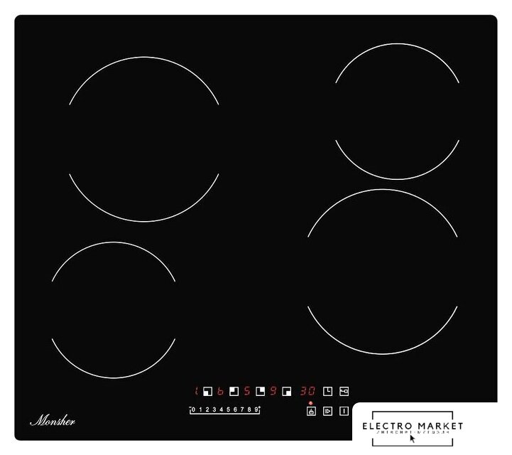 HiLight на 4 конфорки, cтеклокерамика, мощность: 6600 Вт, независимая установка, размеры (ШхГ): 59x52 см