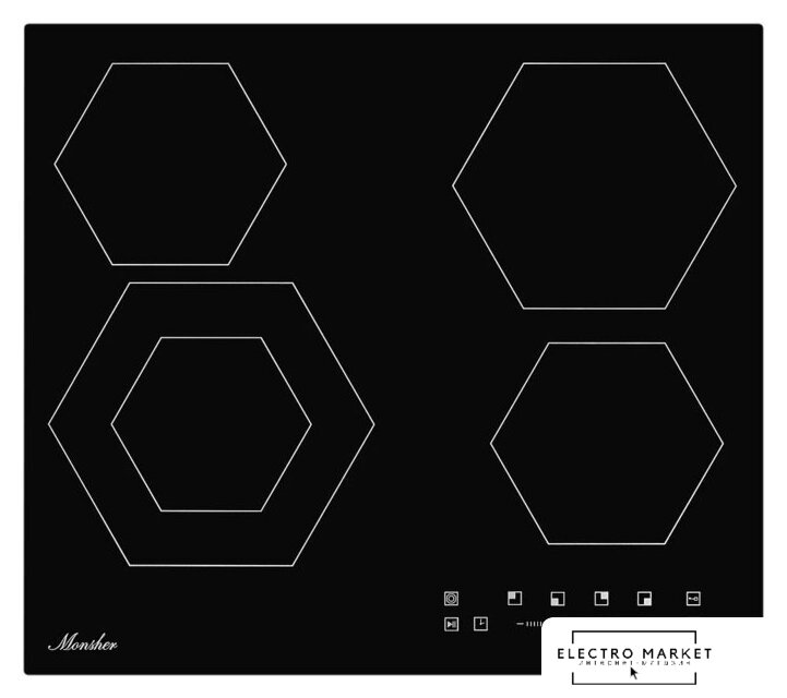 HiLight на 4 конфорки, cтеклокерамика, мощность: 6000 Вт, независимая установка, размеры (ШхГ): 58x51 см