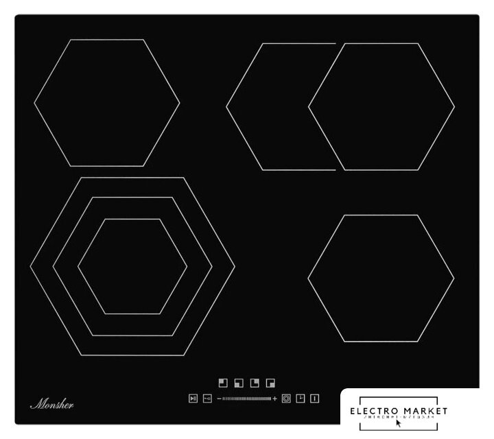 HiLight на 4 конфорки, cтеклокерамика, мощность: 6400 Вт, независимая установка, размеры (ШхГ): 59x52 см