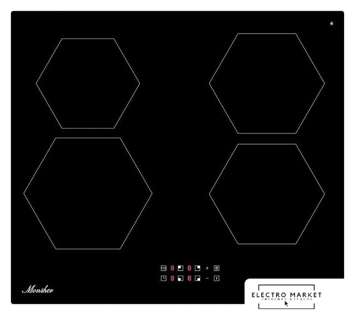 индукционная на 4 конфорки, cтеклокерамика, мощность: 7400 Вт, независимая установка, размеры (ШхГ): 59x52 см