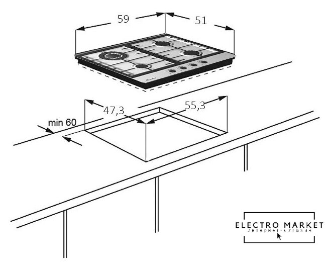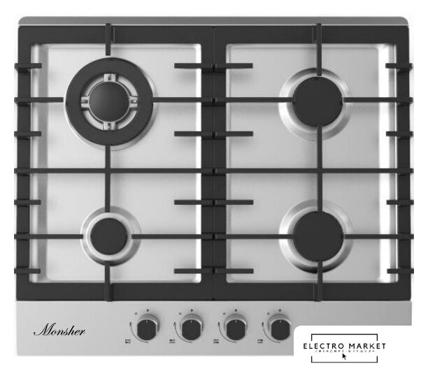 газовая на 4 конфорки, нержавеющая сталь, мощность: 8000 Вт, автоматический электроподжиг, газ-контроль, решетки: чугун, независимая установка, размеры (ШхГ): 60x51 см