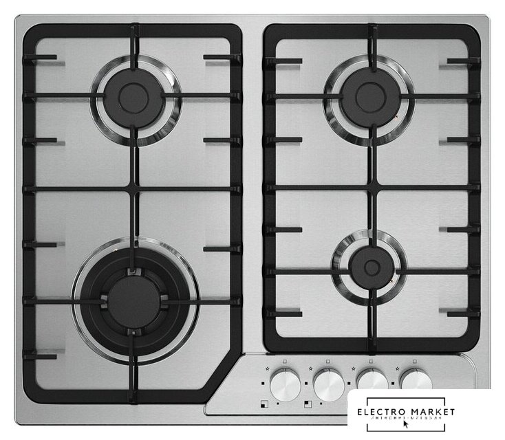 газовая на 4 конфорки, закаленное стекло, мощность: 7000 Вт, автоматический электроподжиг, газ-контроль, решетки: чугун, независимая установка, размеры (ШхГ): 58x51 см