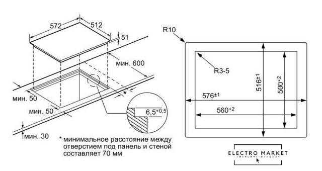 HiLight на 2 конфорки, cтеклокерамика, мощность: 3500 Вт, независимая установка, размеры (ШхГ): 30.6x54.6 см