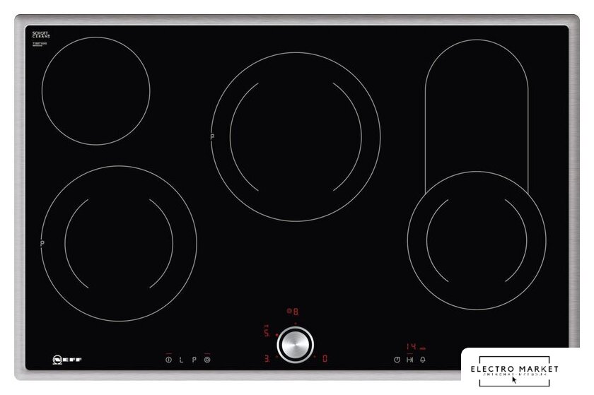 | Подробная информация о конфорках | Передняя левая: 145/210 мм; 1,20/3,00 кВтЗадняя левая: 145 мм; 1,20 кВт Правая: 145/200/350 мм; 0,90/1,75/2,10 кВтЦентральная: 180/230 мм; 1,70/3,40 кВт |