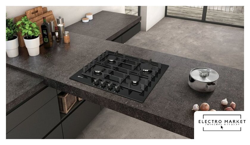 газовая на 5 конфорок, закаленное стекло, автоматический электроподжиг, газ-контроль, решетки: чугун, независимая установка, размеры (ШхГ): 90x51 см