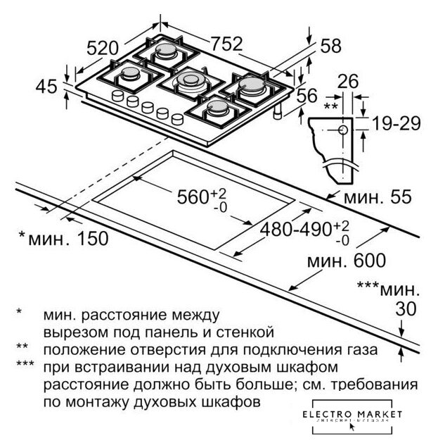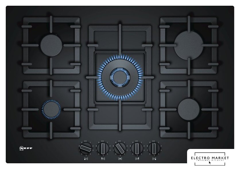 газовая на 5 конфорок, нержавеющая сталь, мощность: 12000 Вт, автоматический электроподжиг, газ-контроль, решетки: чугун, независимая установка, размеры (ШхГ): 91.5x52 см
