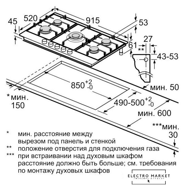 Размеры ниши для встраивания |