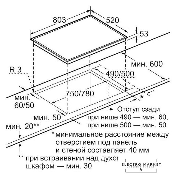 индукционная на 2 конфорки, cтеклокерамика, мощность: 3600 Вт, независимая установка, размеры (ШхГ): 30.6x54.6 см