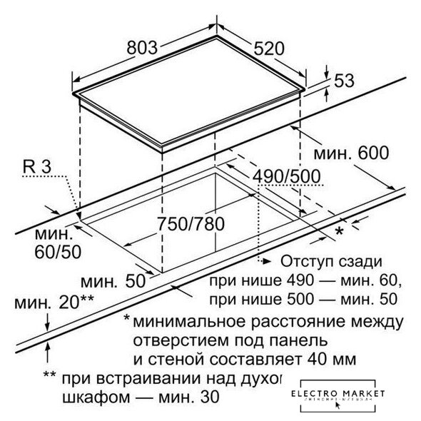 Размеры ниши для встраивания |