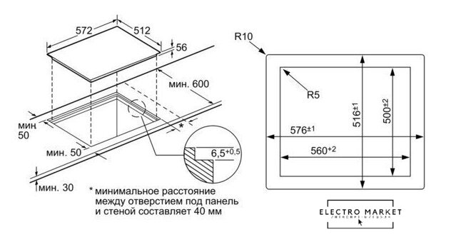 индукционная на 4 конфорки, cтеклокерамика, мощность: 6900 Вт, независимая установка, размеры (ШхГ): 59.2x52.2 см