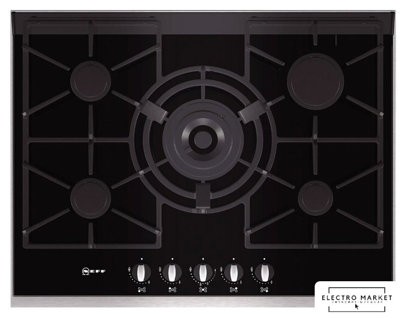 газовая на 5 конфорок, нержавеющая сталь, мощность: 12400 Вт, автоматический электроподжиг, газ-контроль, решетки: чугун, независимая установка, размеры (ШхГ): 70.2x52 см
