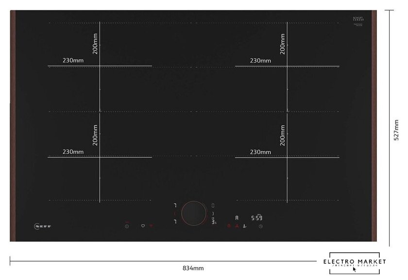 | Подробная информация о конфорках | Все четыре конфорки имеют размеры 23x20 см и мощность 2.2/3.7 кВт каждая; зона FlexZone имеет размер 23x40 см и мощность до 3.3/3.7 кВт. |