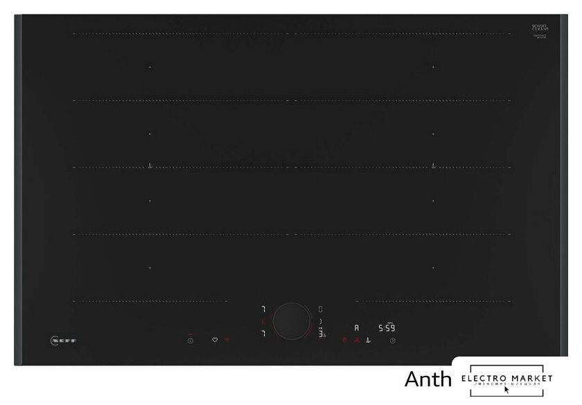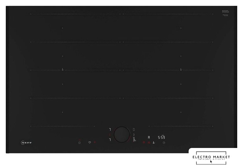 индукционная на 5 конфорок, cтеклокерамика, мощность: 7400 Вт, независимая установка, размеры (ШхГ): 80x52 см