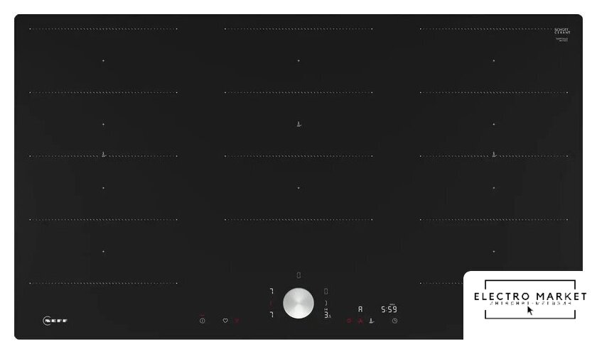 индукционная на 5 конфорок, cтеклокерамика, мощность: 11100 Вт, независимая установка, размеры (ШхГ): 91.2x52 см