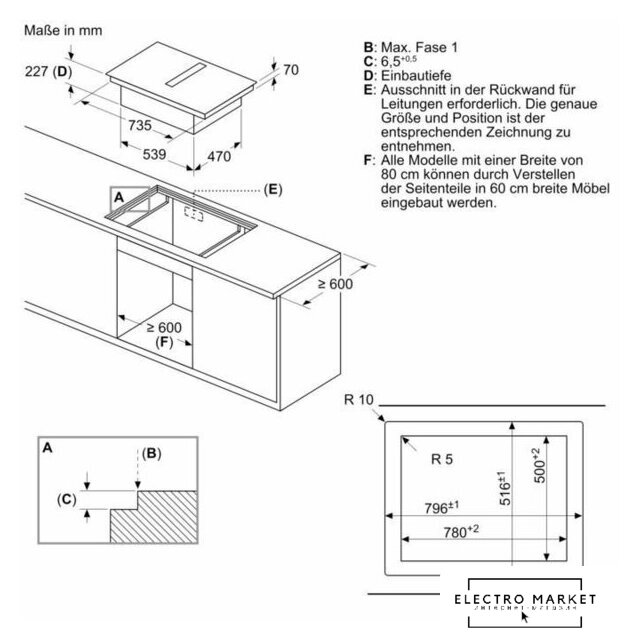 индукционная на 4 конфорки, cтеклокерамика, мощность: 7300 Вт, автоматика закипания, независимая установка, размеры (ШхГ): 80x52 см