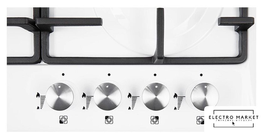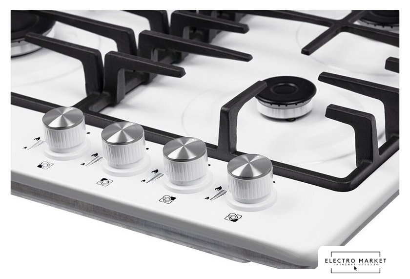 газовая на 4 конфорки, эмалированная сталь, мощность: 7600 Вт, автоматический электроподжиг, газ-контроль, решетки: чугун, независимая установка, размеры (ШхГ): 59x52 см