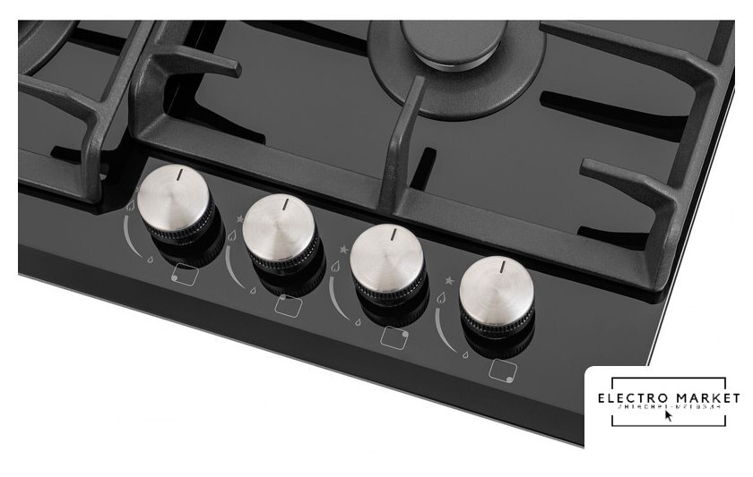 газовая на 4 конфорки, закаленное стекло, мощность: 7400 Вт, автоматический электроподжиг, газ-контроль, решетки: чугун, независимая установка, размеры (ШхГ): 59x52.4 см