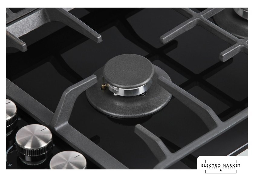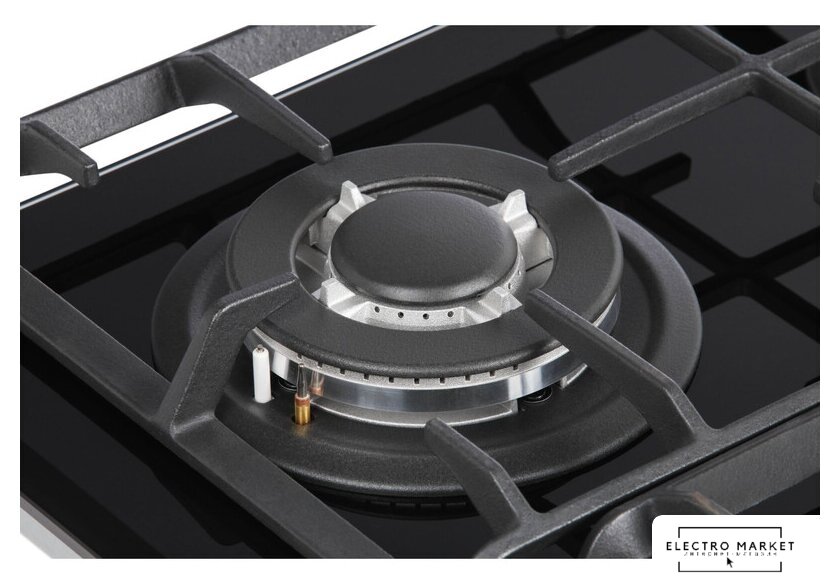 газовая на 3 конфорки, закаленное стекло, мощность: 6230 Вт, автоматический электроподжиг, газ-контроль, решетки: чугун, независимая установка, размеры (ШхГ): 45.5x51 см