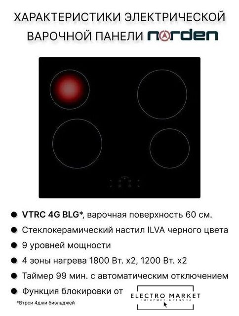 Варочные панели Norden Norden VTRC 1 4G BLG Код товара: 11263679