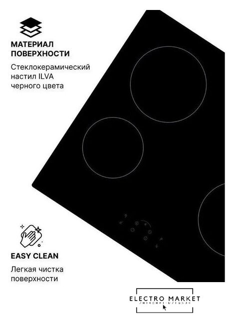 электрическая на 3 конфорки, cтеклокерамика, мощность: 4200 Вт, независимая установка, размеры (ШхГ): 44x52 см