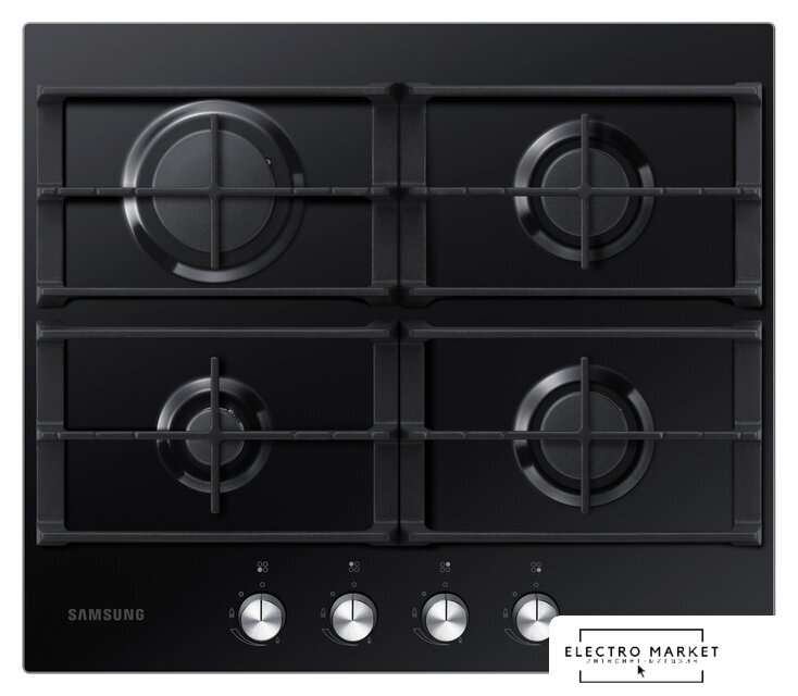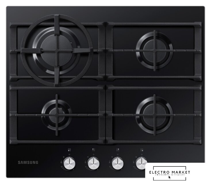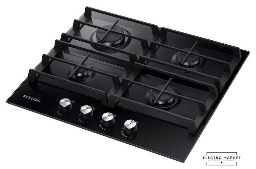 газовая на 4 конфорки, закаленное стекло, мощность: 8300 Вт, автоматический электроподжиг, газ-контроль, решетки: чугун, независимая установка