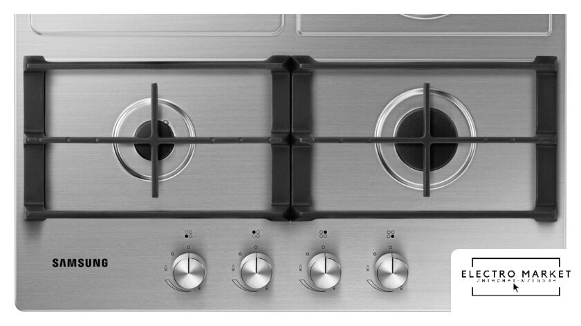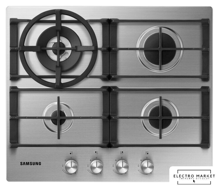 газовая на 4 конфорки, закаленное стекло, мощность: 8300 Вт, автоматический электроподжиг, газ-контроль, решетки: чугун, размеры (ШхГ): 60x52 см