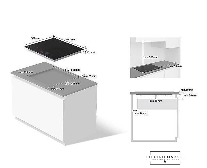 индукционная на 4 конфорки, cтеклокерамика, мощность: 6900 Вт, независимая установка, размеры (ШхГ): 59.2x52.2 см