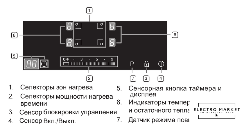 индукционная на 4 конфорки, cтеклокерамика, мощность: 7200 Вт, независимая установка, размеры (ШхГ): 90x35 см