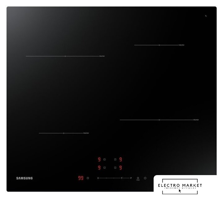 индукционная на 4 конфорки, закаленное стекло, мощность: 6000 Вт, независимая установка, размеры (ШхГ): 59x52 см