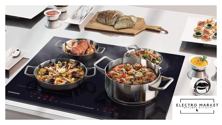 индукционная на 5 конфорок, cтеклокерамика, мощность: 7400 Вт, независимая установка, размеры (ШхГ): 76.5x53 см