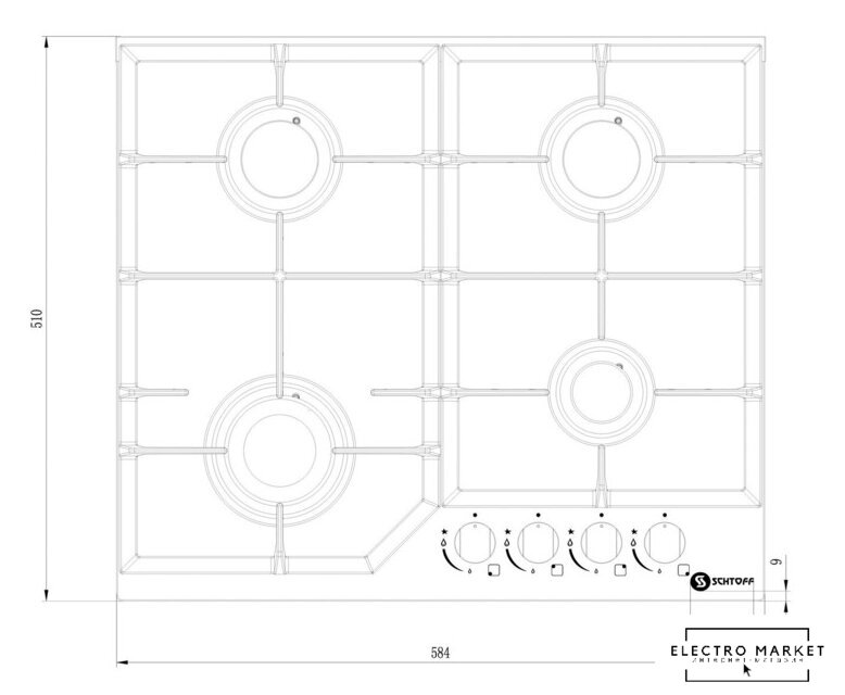 Подробная информация о конфорках | Задняя левая 1,88 кВтЗадняя правая 1,88 кВтПередняя левая 2,4 кВтПередняя правая 0,9 кВт |