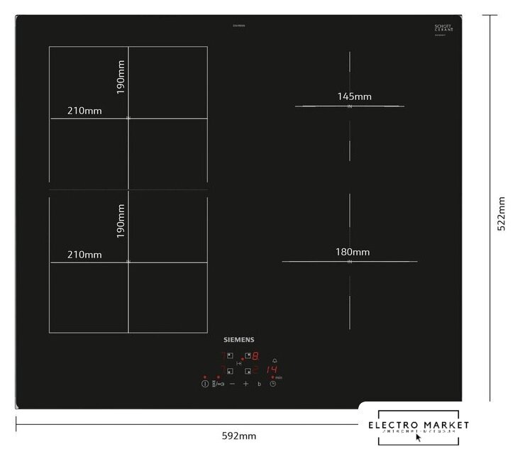 индукционная на 4 конфорки, cтеклокерамика, мощность: 6900 Вт, независимая установка, размеры (ШхГ): 59.2x52.2 см