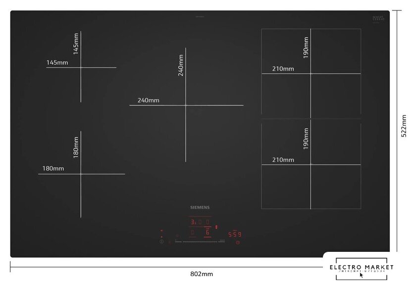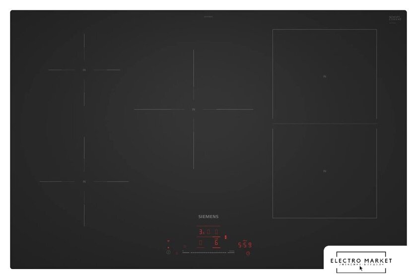 индукционная на 6 конфорок, cтеклокерамика, мощность: 11100 Вт, автоматика закипания, независимая установка, размеры (ШхГ): 90x51 см