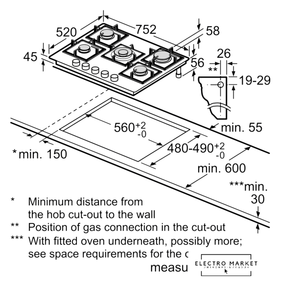 газовая на 5 конфорок, нержавеющая сталь, автоматический электроподжиг, газ-контроль, решетки: чугун, независимая установка, размеры (ШхГ): 90x51 см