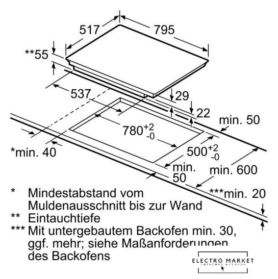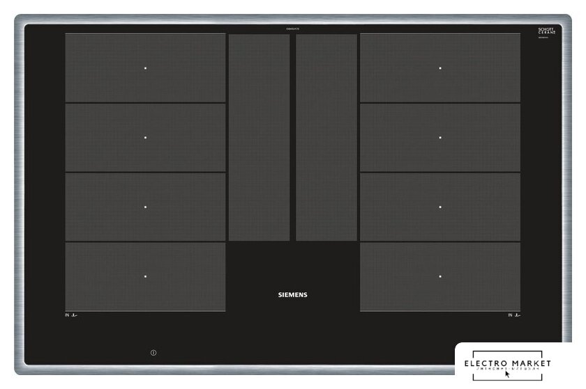 Подробная информация о конфорках | Зоны приготовления:2 x 400 мм x 230 мм, 3,3 кВт (максимальная мощность 3,7 кВт) или 4 x 190 мм, 2,2 кВт (максимальная мощность 3,7 кВт) |