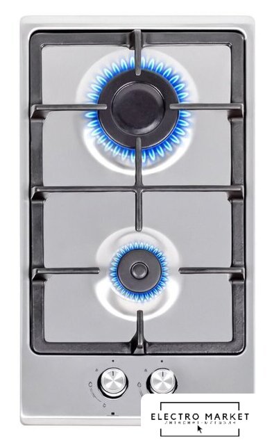 газовая на 2 конфорки, нержавеющая сталь, автоматический электроподжиг, газ-контроль, решетки: чугун, независимая установка, размеры (ШхГ): 30x52 см