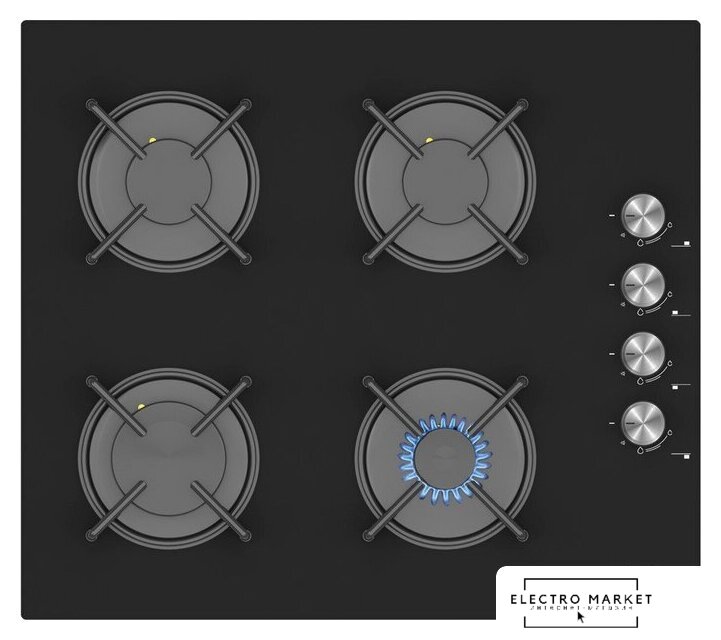 газовая на 4 конфорки, закаленное стекло, мощность: 9100 Вт, автоматический электроподжиг, газ-контроль, решетки: чугун, независимая установка, размеры (ШхГ): 59x51.5 см