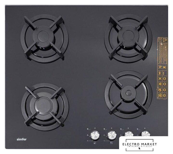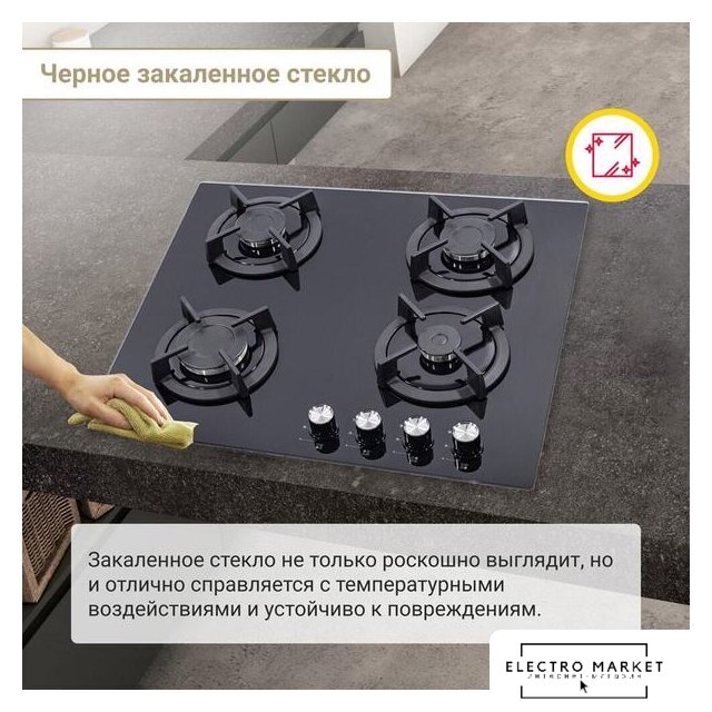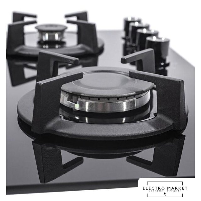 газовая на 4 конфорки, закаленное стекло, мощность: 8000 Вт, автоматический электроподжиг, газ-контроль, решетки: чугун, независимая установка, размеры (ШхГ): 59x51.1 см