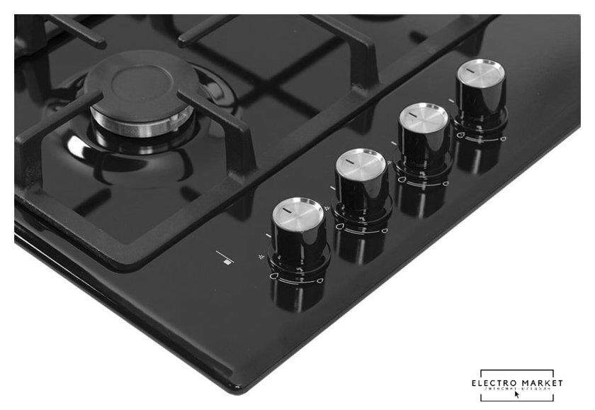 газовая на 4 конфорки, закаленное стекло, мощность: 8000 Вт, автоматический электроподжиг, газ-контроль, решетки: чугун, независимая установка, размеры (ШхГ): 60x51 см