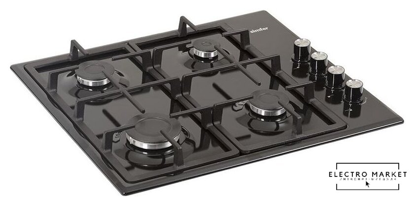 газовая на 4 конфорки, закаленное стекло, мощность: 7500 Вт, автоматический электроподжиг, решетки: чугун, независимая установка, размеры (ШхГ): 60x52 см
