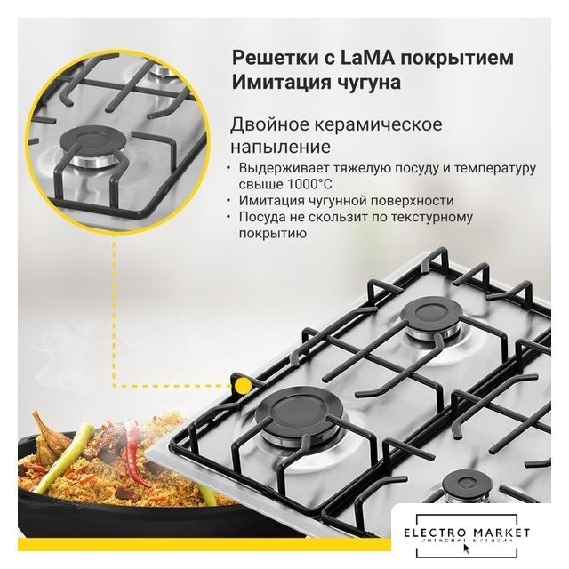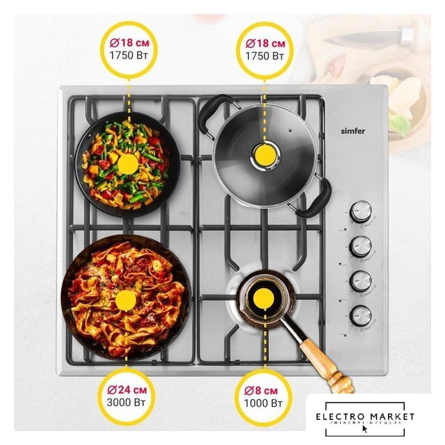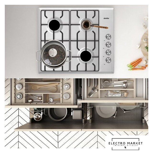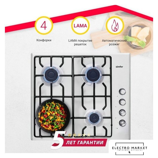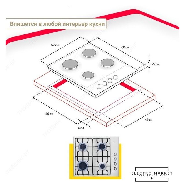 газовая на 4 конфорки, эмалированная сталь, мощность: 7500 Вт, автоматический электроподжиг, газ-контроль, решетки: эмалированная сталь, независимая установка, размеры (ШхГ): 60x52 см