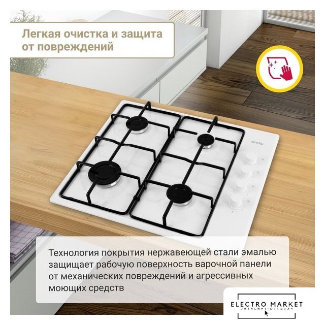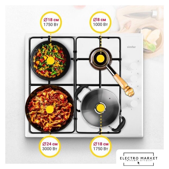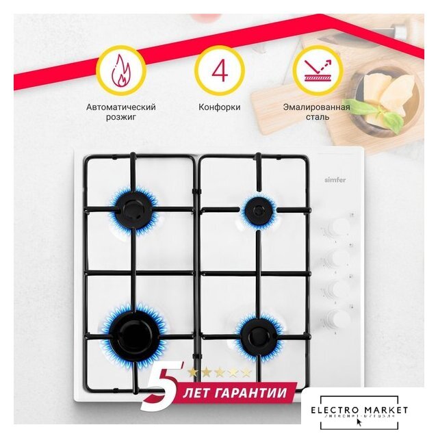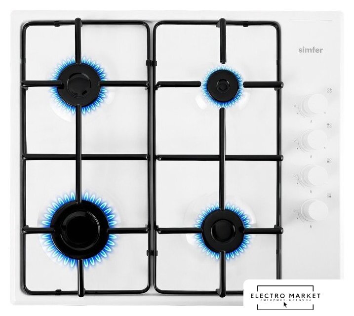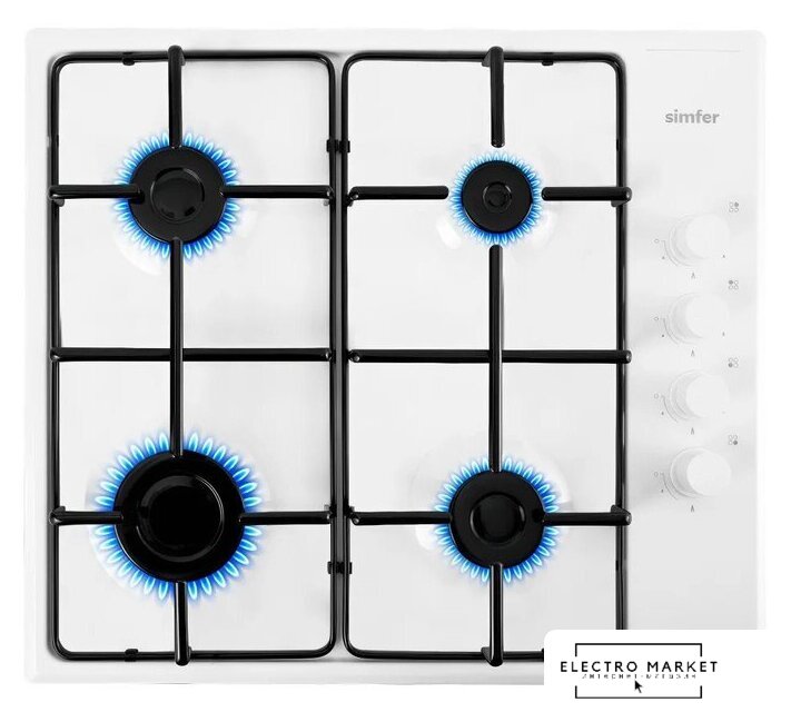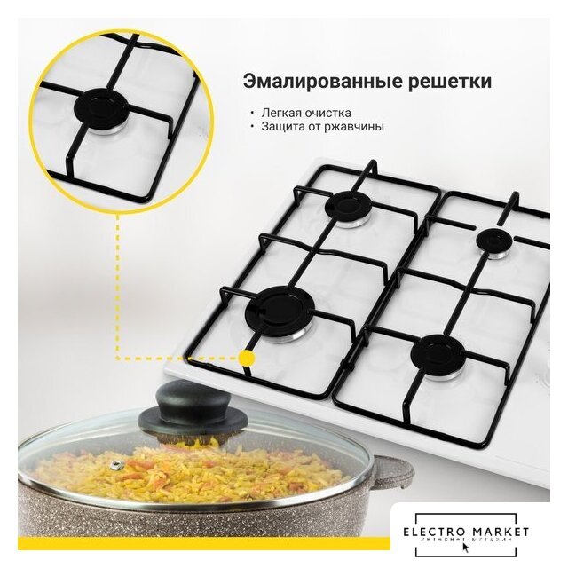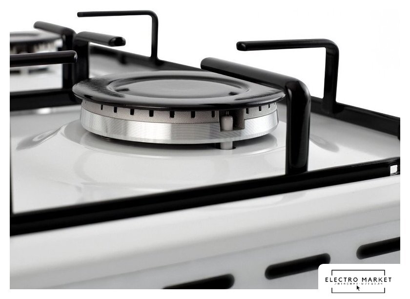 газовая на 4 конфорки, эмалированная сталь, мощность: 7600 Вт, автоматический электроподжиг, газ-контроль, решетки: чугун, размеры (ШхГ): 59x51 см