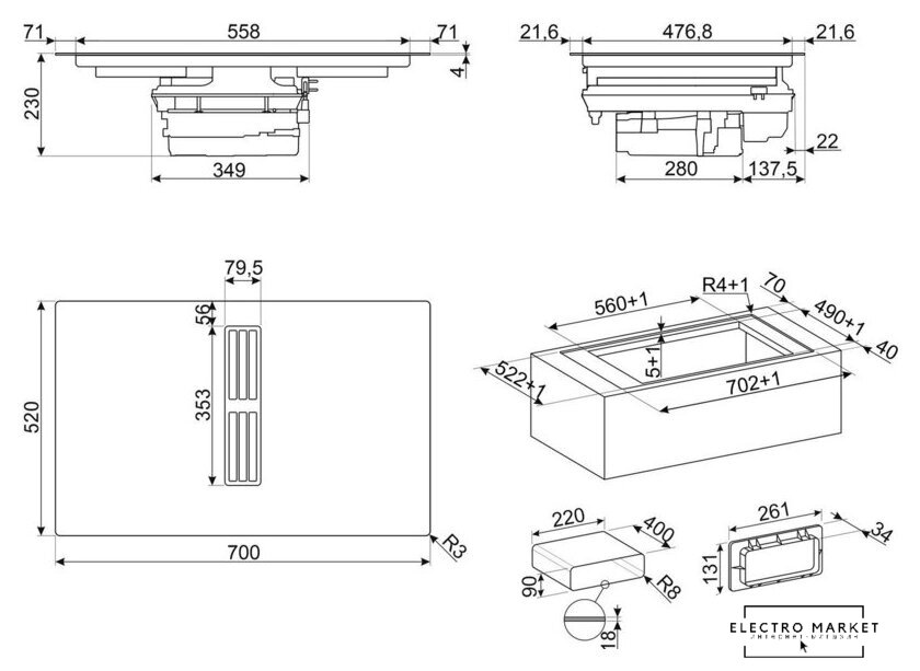 | Подробная информация о конфорках | Фронтальная левая зона - 21.0x19.0 см, мощность 2.10 кВт, с Booster до 3.00 кВт; задняя левая зона - размер не указан; задняя правая зона - размер не указан; фронтальная правая зона - размер не указан; левая Multizone - 39.5x22.0 см, Booster до 3.70 кВт. |