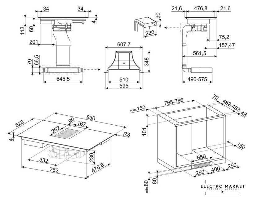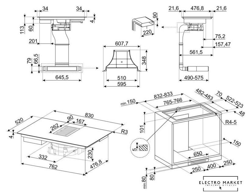 Общая мощность | 7 620 Вт (суммарная с вытяжкой) |