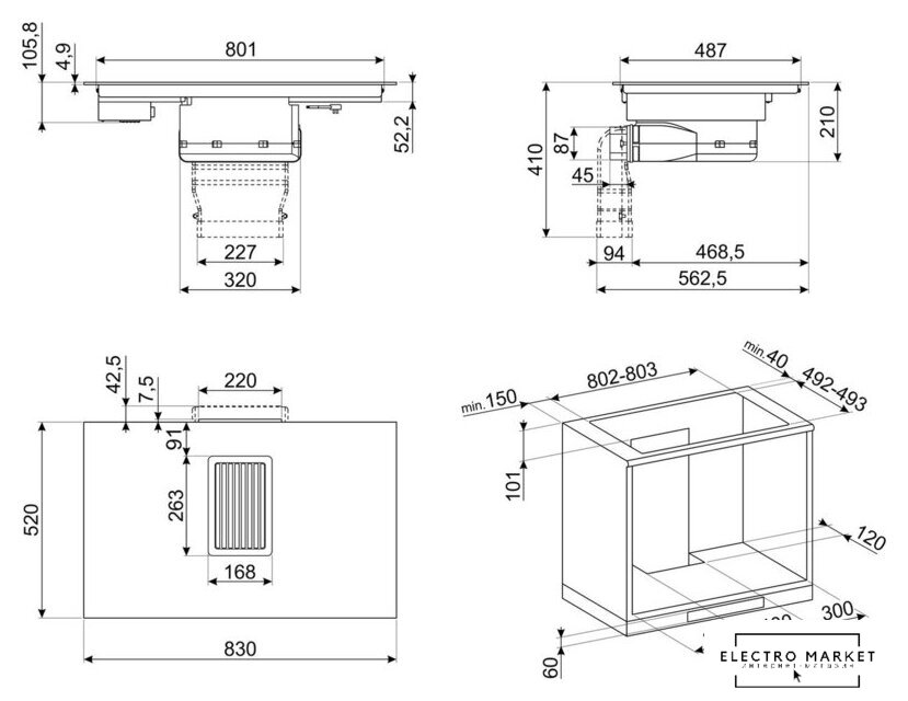 индукционная на 4 конфорки, cтеклокерамика, мощность: 7545 Вт, независимая установка, размеры (ШхГ): 83x52 см
