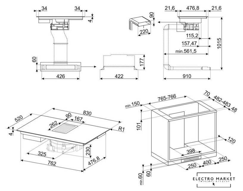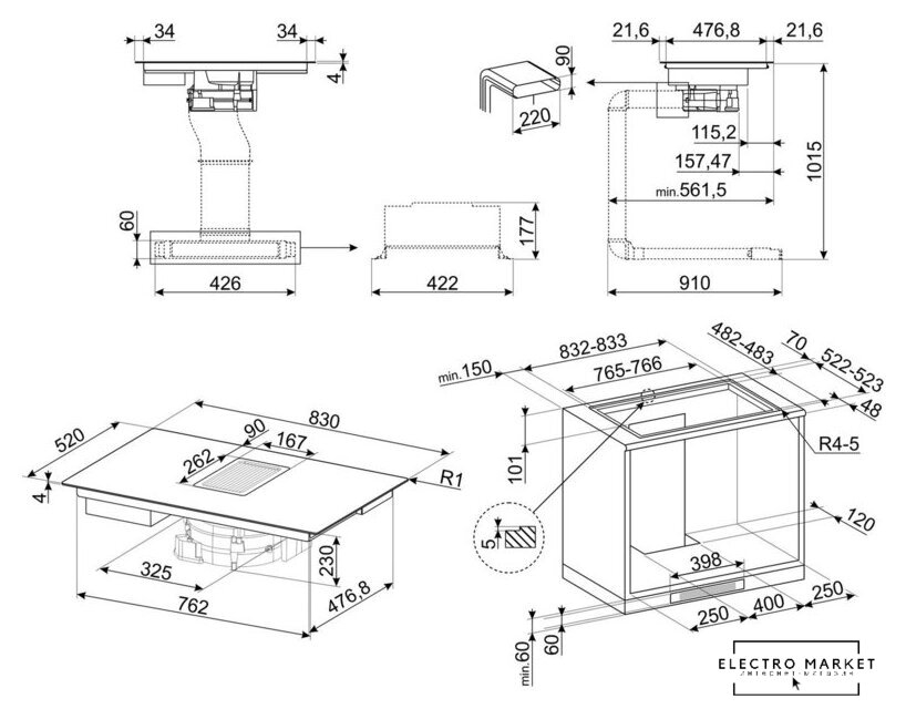 Общая мощность | 7 545 Вт (суммарная с вытяжкой) |