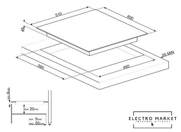 индукционная на 4 конфорки, cтеклокерамика, мощность: 7400 Вт, независимая установка, размеры (ШхГ): 60x51 см