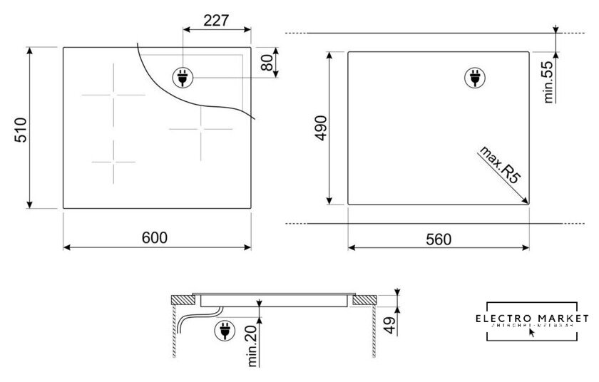 индукционная на 5 конфорок, cтеклокерамика, мощность: 7400 Вт, независимая установка, размеры (ШхГ): 79.2x51.2 см