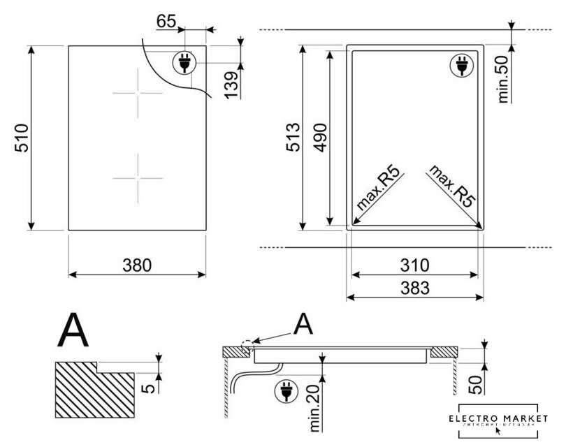индукционная на 5 конфорок, cтеклокерамика, мощность: 7400 Вт, независимая установка, размеры (ШхГ): 79.2x51.2 см